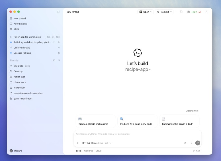 OpenAI의 Codex(코덱스)가 독립 실행형 앱으로 주목할 만한 변화라고 할 수 있다.