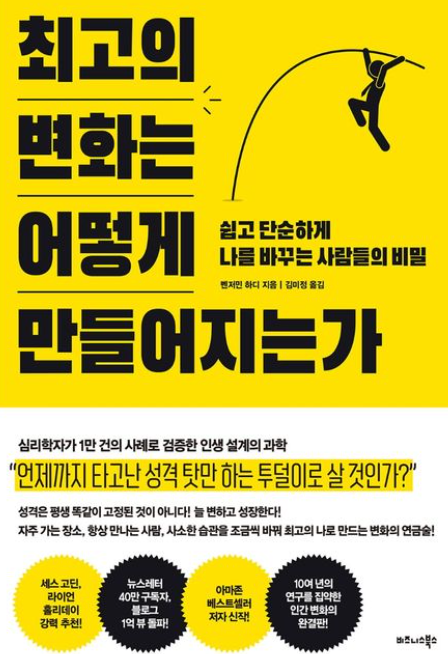《최고의 변화는 어떻게 만들어지는가(Personality isn‘t Permanent: Break Free From Self-Limiting Beliefs and Rewrite Your Story)》는 미국의 작가, 자기 계발 코치인 벤자민 하디의 저서다. 성격은 고정적이고 변하지 않는다는 전통적인 고정관념과 편견은 잘못되었고, 사람은 어떤 시점에서든 자신과 자신의 삶을 재정의할 수 있는 힘을 가지고 있다. 이 책은 전작 《최고의 변화는 어디서 시작되는가》에서 강조한 인간 변화의 원동력 ‘환경’에서 한 단계 진보한 것으로 볼 수 있다. 즉 환경이 바뀌어도 본질적인 변화를 이룰 수 없다는 사실을 깨달은 것이다. 잠시동안은 변화할 수 있지만 지속하지 못한다. 이 책은 최고의 변화를 만드는 네 가지 레버를 다음과 같이 제시한다. 첫 번째 레버는 ‘트라우마’로, 우리는 모두 트라우마에 갇혀 있으며, 이를 극복하기 위해서 내 안의 진짜 두려움 마주해야 한다. 또한 나를 위해 모이는 팀 만들어야 한다. 두 번째는 레버는 ‘정체성’으로, 정체성 확언을 통해 의지력과 과거의 기억을 바꿀 수 있다. 또한 상상하는 미래는 지금은 픽션이지만 곧 현실이 된다. 세 번째 레버는 ‘잠재의식’으로, 결국 잠재의식이 전부이 전부다. 풍요의 사고방식을 기반으로 나눌수록 부자가 될 수 있다. 네 번째 레버는 ‘환경’으로, 이는 인생을 바꾸는 가장 빠른 방법이다. 이를 위해 전략적 기억, 선택적 무시, 벼랑 끝 전략과 같은 환경 설계의 법칙을 적용해야 한다. 많은 사람이 ‘고정된 자아’ 같은 잘못된 믿음을 가지고 살고 있다. 자신이 원하는 인생을 살지 못하고, 과거에 끌려다니며 더 찬란히 빛나는 미래를 포기한다. 성격은 당신이 되고자 하는 사람과 성취하고자 하는 목표를 바탕으로 의식적으로 선택될 수 있고, 선택되어야 한다. 또한, 이 책은 정확한 목표, 아주 작은 행동. 구체적으로 그리는 10년 후 내 모습, ‘핵심 습관’으로 시스템을 구축하기, 과정이 아닌 결과로 말하기, 최고의 휴식, ‘파워 무브’, 일기 쓰기 등의 구체적인 방법 또한 제시한다.