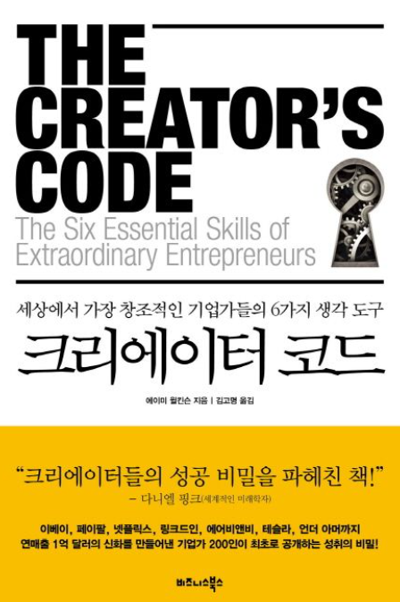 《크리에이터 코드(Creator's Code: The Six Essential Skills of Extraordinary Entrepreneurs)》는 미국의 작가, 기업가, 스탠퍼드 경영대학원의 강사인 에이미 윌킨슨가 쓴 작품이다. 저자는 성공적인 기업가들에게는 공통적인 6가지 필수적인 도구들이 있다고 말한다. 빈틈 찾기, 앞만 보고 질주하기, 우다 루프로 비행하기, 현명하게 실패하기, 협력을 도모하기, 선의를 베풀기가 그것이다. 이를 좀 더 구체적으로 요약하면 다음과 같다. 첫째로, 다른 사람들이 보지 못하는 빈틈(기회)을 보려면, 늘 호기심을 가지고 의지적으로 위험을 감수하려고 노력해야 한다. 둘째로, 일단 찾아낸 빈틈에 대해서는 큰 변화를 요구한다고 할지라도, 변화에 적응하면서 필요할 때는 기꺼이 진로를 바꿔야 한다. 이때 빠르게 결정하기 위한 기법이 우다 루프이다. 우다(OODA, observe–orient–decide–act) 루프는 군사 작전에서 사용하던 기법으로, 신속하게 관찰하고, 방향을 설정하고, 결정하고, 행동하는 것이다. 이렇게 빠른 결정과 현명한 실패를 통해 지속적인 개선을 도모한다. 실패는 피할 수 없는 필수적인 것이기 때문이다. 셋째로, 강력한 지원 네트워크를 구축해야 한다. 이를 위해서는, 자신의 비전을 다른 사람들에게 잘 전달하는 스토리텔링의 힘을 알아야 한다. 넷째로, 다른 사람들의 도움 요청에 선의로 돕는다면, 나중에 더 큰 기회의 문으로 다가온다는 것을 알아야 한다. 이어 저자는 일론 머스크, 사라 블래클리, 리처드 브랜슨을 포함한 성공적인 기업가들의 사례를 연구하고, 위에서 제시한 도구들을 어떻게 사용했는지를 제시한다. 결론적으로 저자는 창의성이라는 특징이 일부 특별한 사람들만 가질 수 있는 것이 아니라, 제시한 여섯 가지 도구들을 잘 활용하고 훈련하는 것만으로도 가질 수 있다고 말한다.