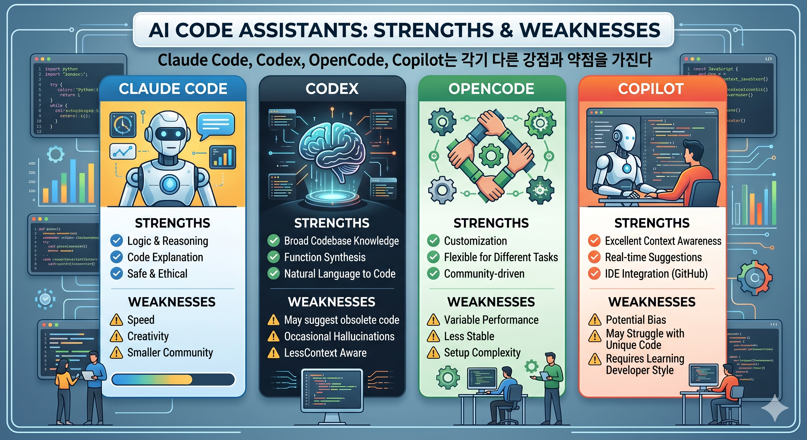 ▲ 2026년 4가지 주요 AI 코딩 에이전트는 각기 다른 강점과 약점을 가진다